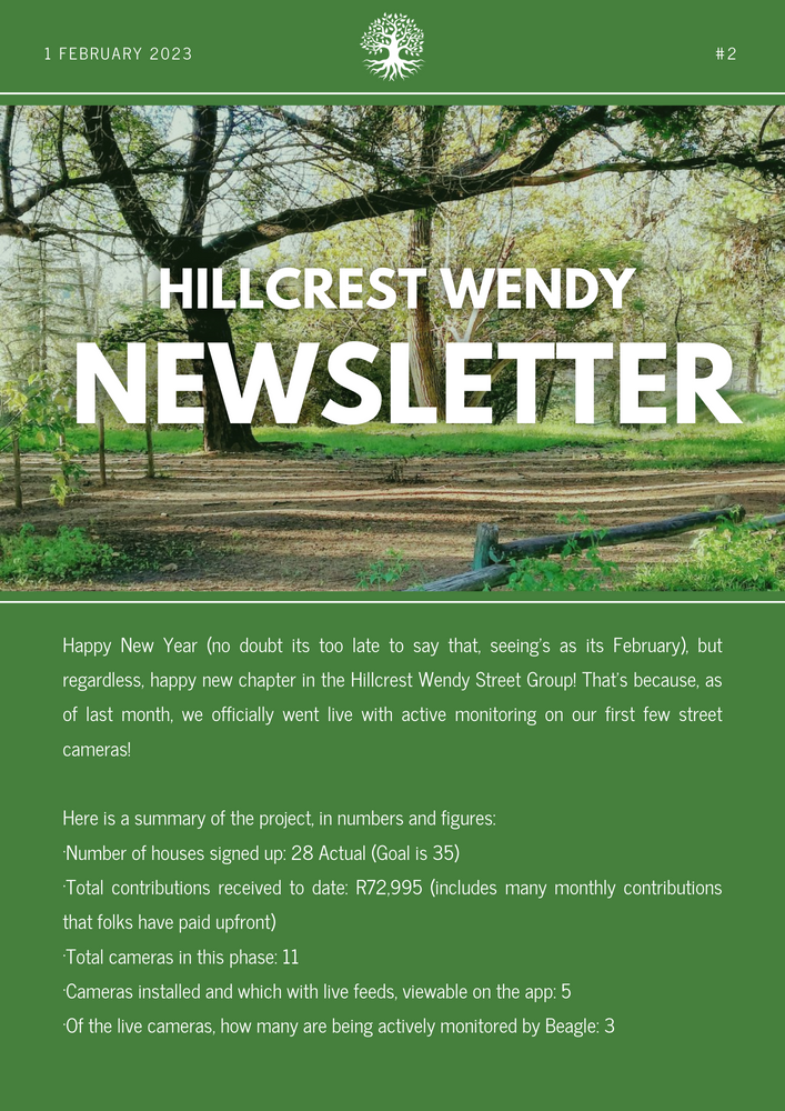 In late 2022, a number of residents of Hillcrest and Wendy Avenues got together and formed a plan to be proactive about security in our streets. Due to our proximity to Delta Park and the ease of escape for would-be criminals, we formed a taskforce to secure our perimeter. After consultations with Beagle Watch (being the most prevalent and active armed response company in our streets), we decided the best course of action would be to set up an AI-monitored camera perimeter to pre-empt any nefarious activity.